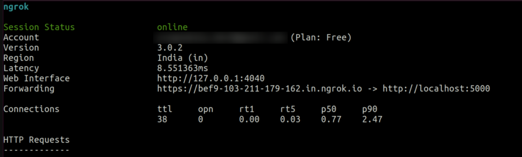 Now we will need NGROK for running that program and get the public IP address by running the code “ngrok http 5000” on NGROK and then we will get a public IP address.