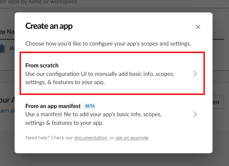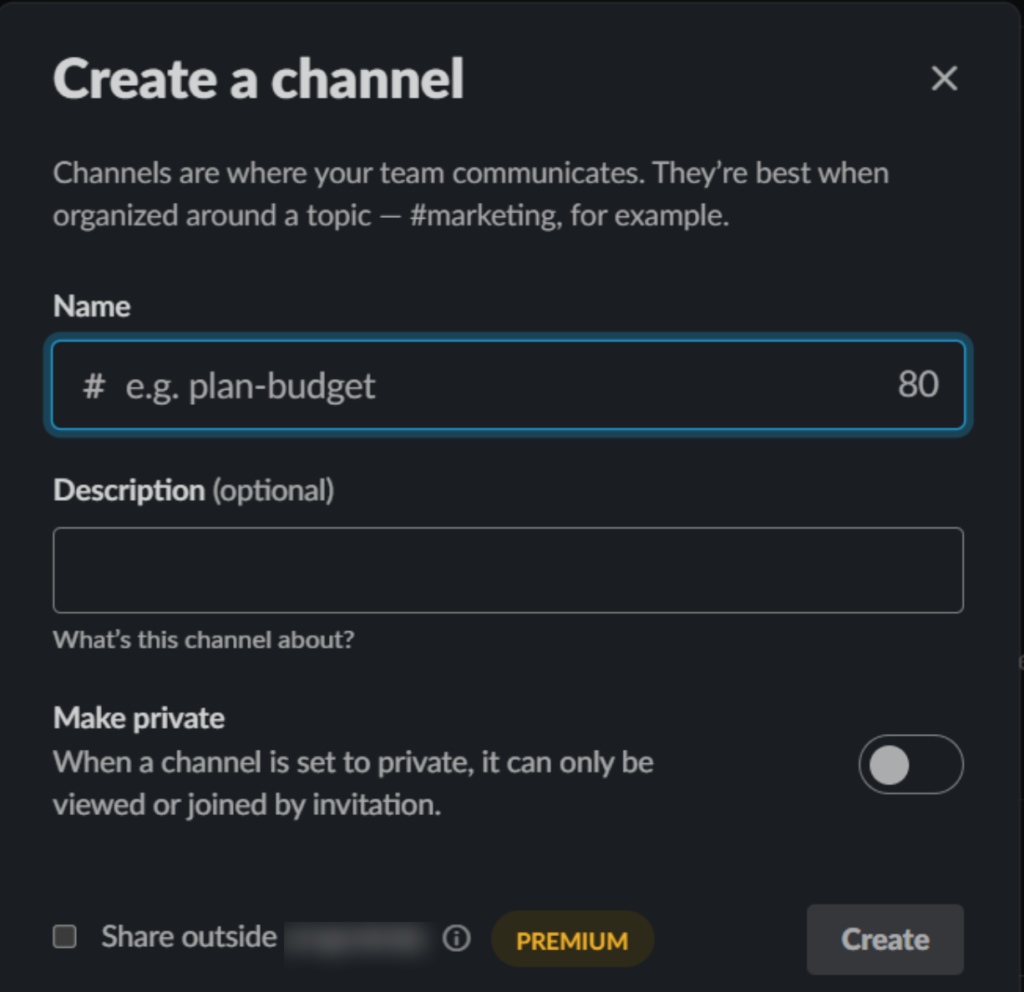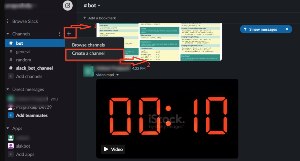 Step 11: Now we create the channel in slack and add our app to it. To open your slack account go to the channel bar and click on the “+” sign. Then click on “Create a new channel”.