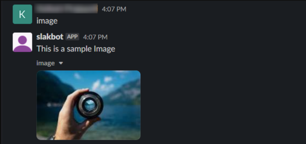 After running the code when we type “image” in our channel, we will get a reply from the bot with an image that we have passed.