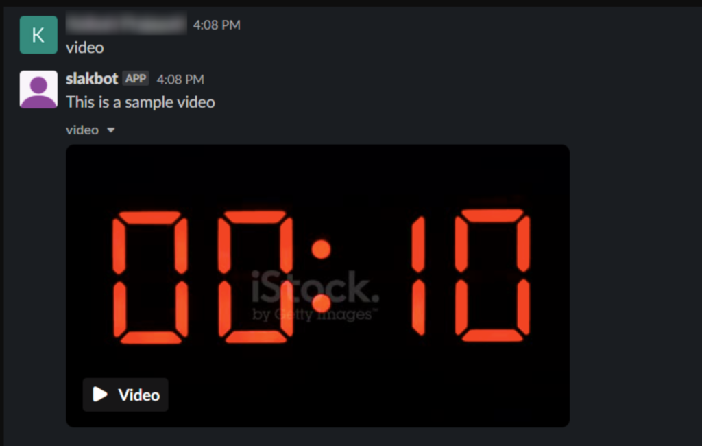 After running the code, if we type “video” in our channel then we will get a reply from the bot with the video that we have passed.
