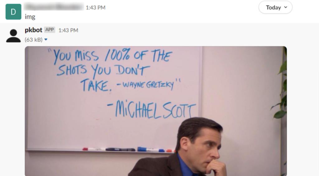 After running the code when we type “img” in our channel, we will get the reply from the bot with an image which URL we have passed in the URL section.