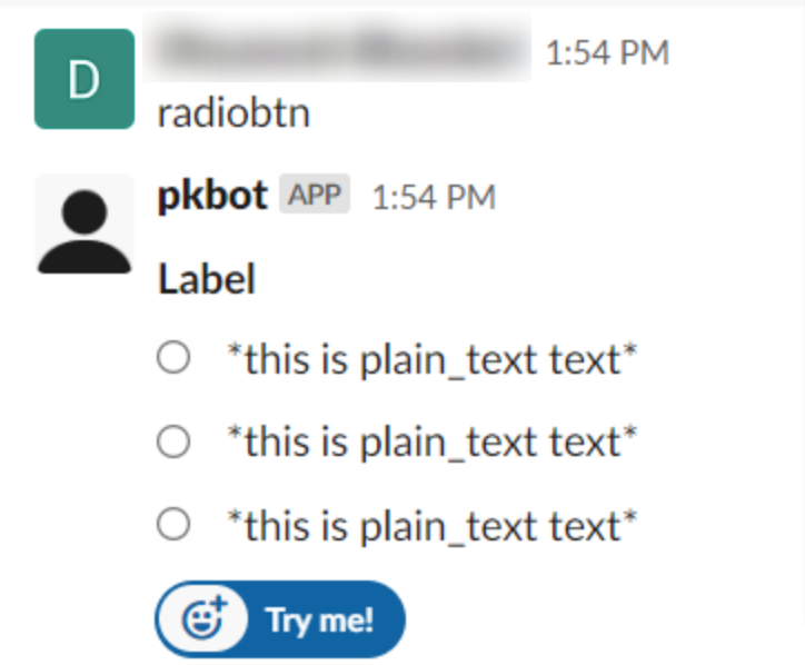 After running the code when we type “radiobtn” in our channel then we will get a reply from the bot with a radio button.