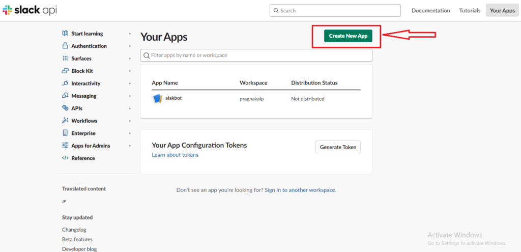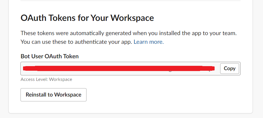 Now Just Scroll up to “OAuth Tokens for Your Workspace”. Click on Reinstall to Workspace and then click on Allow.
