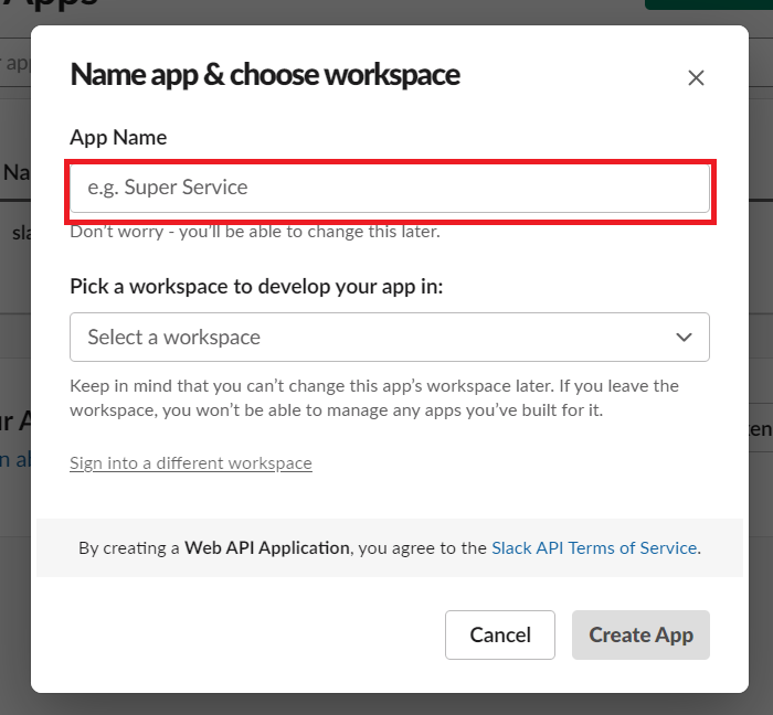 Step 5: Now give your app name and select workspace then click on the “Create App” button.